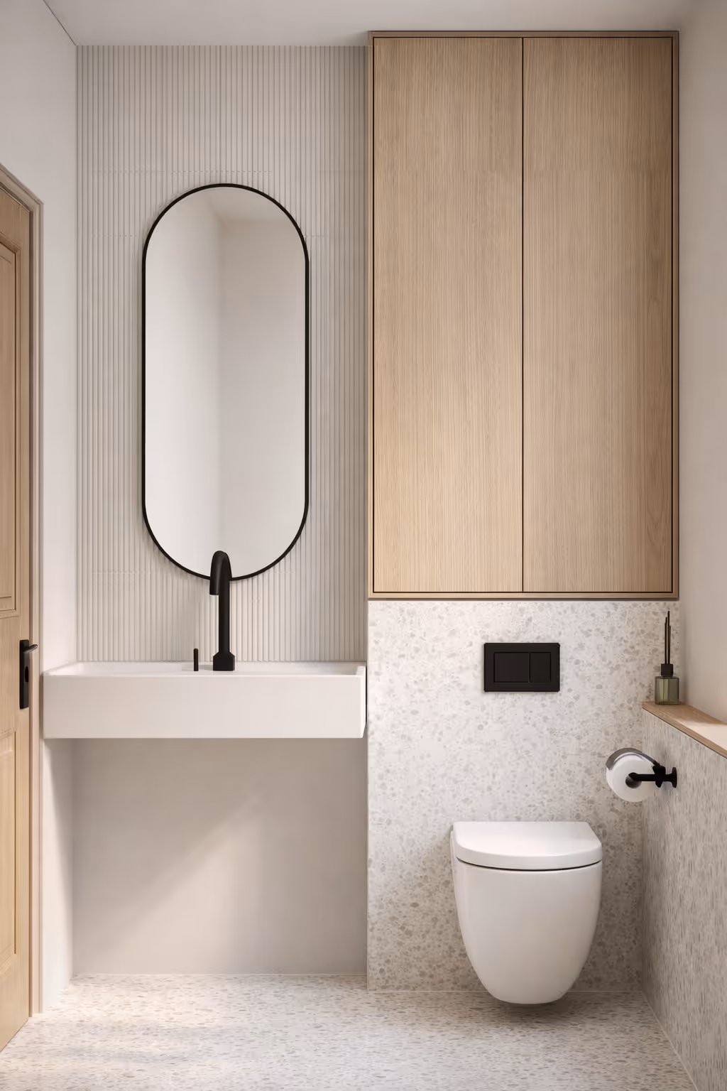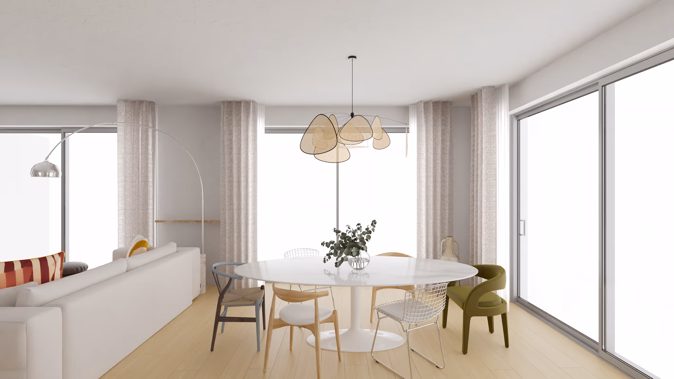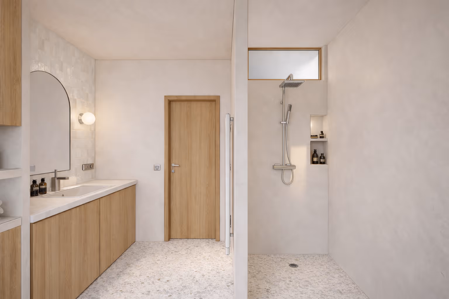 Projet d’architecture d’intérieur pour une maison neuve en Corse, pensé dès la conception pour structurer les espaces, maîtriser les volumes et favoriser une relation fluide entre intérieur, lumière et usages.